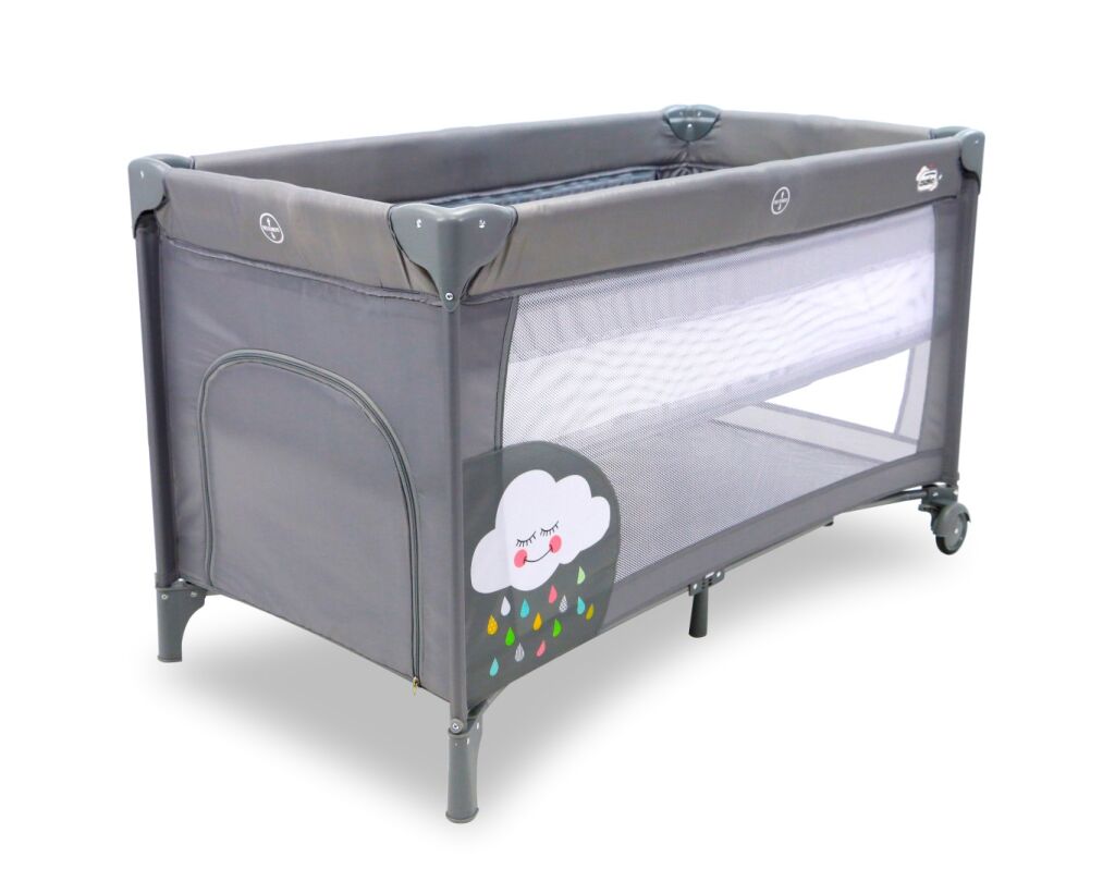 Cestovní postýlka hodná pro děti od narození do 15kg. Pevná konstrukce. Síťované bočnice. Cestovní taška. Závěsné dno. Praktická kapsa na hračky. Dvojitá pojistka. Polstrované matrace. Velmi kompaktní po složení. S roztomilým potiskem. Plasty ladí s potahem postýlky. 2 kolečka s brzdou.