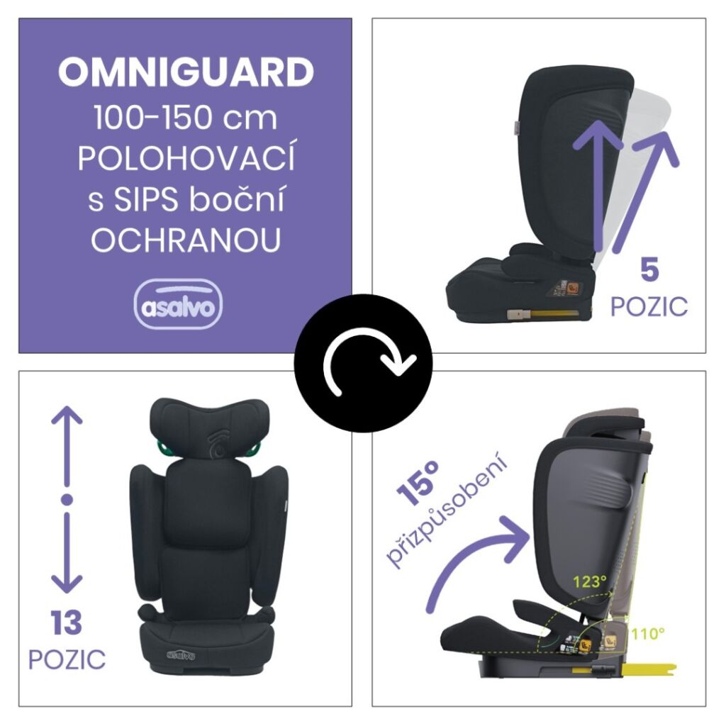 - Asalvo OMNIGUARD iSize sklápěcí autosedačka 100-150 cm...