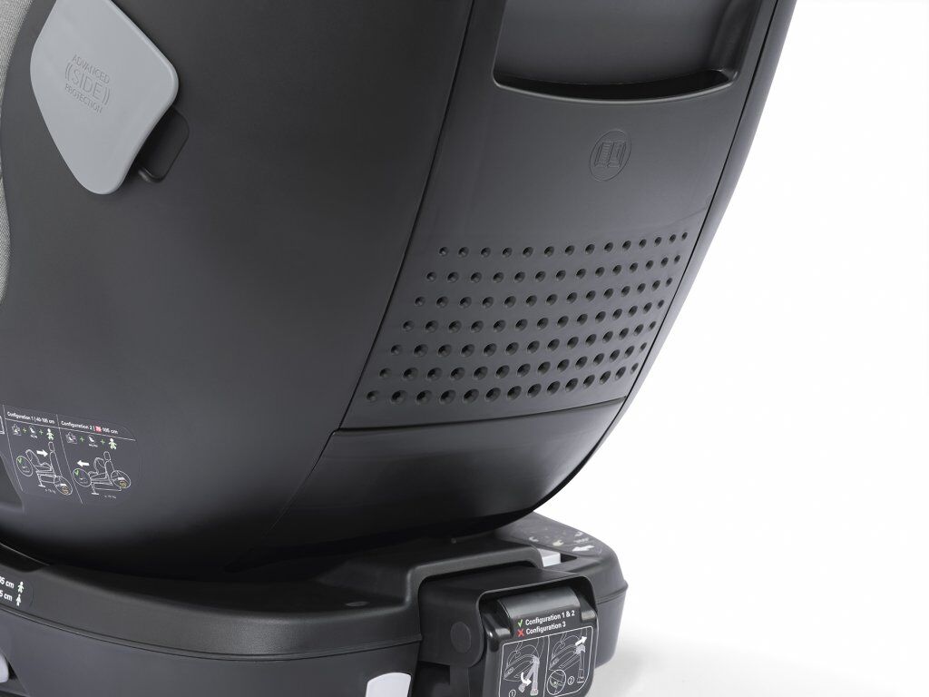 Bezpečnostní systém navíc splňuje přísné požadavky nové bezpečnostní normy i-Size. Tři kotevní body udrží sedačku na místě a pohltí energie nárazu působící na dítě v případě nehody.