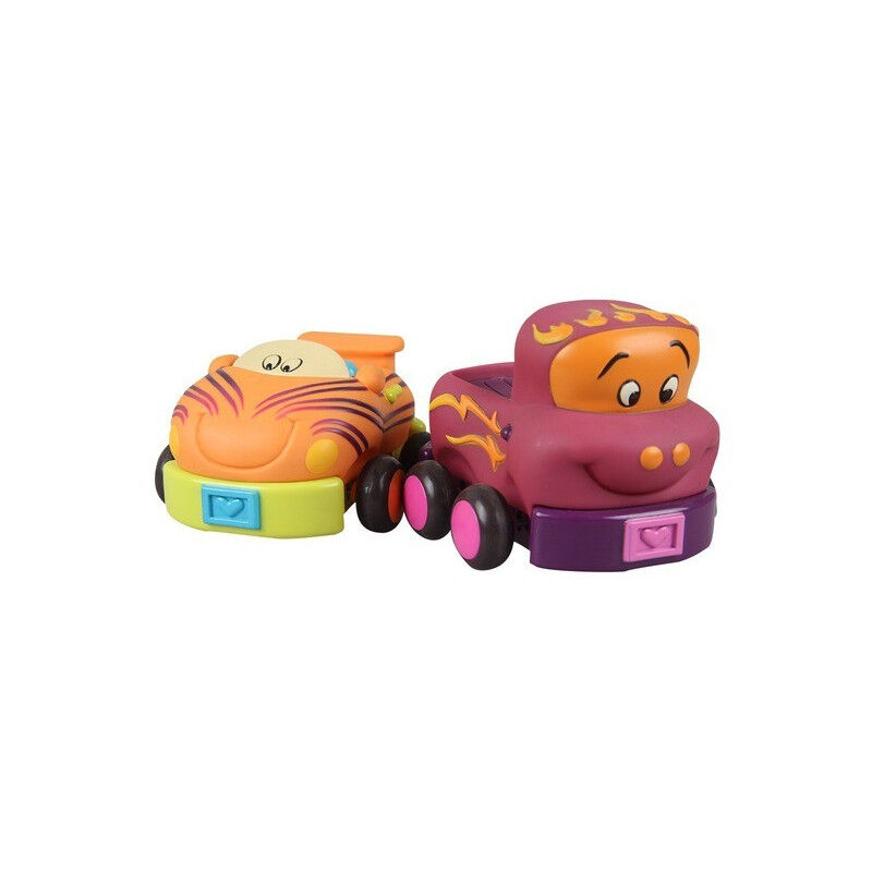 Čtyři měkká plastová autíčka Wheee-Is! od Btoys jsou určena pro nejmenší milovníky aut. Autíčka na setrvačník po natažení dozadu samy pojedou kupředu. Jedno autíčko zvoní, náklaďák cinká, závodní auto chrastí a taxík píská. Nepotřebují baterie. Vhodné pro děti od 1 do 3 let.