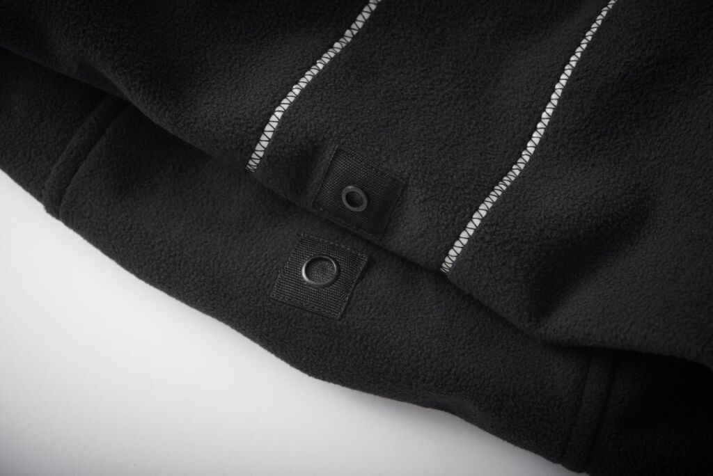 Přikrývka je z měkkého fleecu a vnější materiál má voděodolnou a větruodolnou úpravu povrchu, přičemž je zachována i dokonalá prodyšnost.