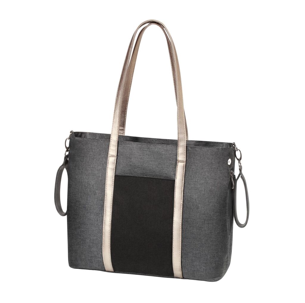 Přebalovací taška SO DYNAMIC je módní a zároveň funkční taška ideální pro potřeby maminek a jejich dětí, ať už na kratší, či delší procházky. Dlouhý ramenní popruh a i rukojeť zajišťují pohodlné nošení. Rovněž obsahuje kapsy, pro rychlý přístup k telefonu nebo dokladům, i síťované kapsy na dětské láhve. Hlavní přihrádka je na zip. Při středním zatížení tašky lze boky tašky připnout, čímž se zmenší její objem. Boční popruhy umožní připevnění tašky k jakémukoliv modelu kočárku. Jemný kovový design dodává tašce městskou eleganci.