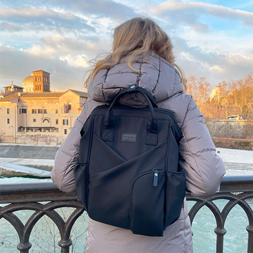 Moderní batoh pro rodiče v elegantním stylu je dokonalým společníkem pro každodenní výzvy. Spojuje kompaktní rozměry s výjimečnou prostorností a originálním designem. Ideální pro milovnice minimalismu a přehledné organizace. Díky prostornosti se do něj vejde vše potřebné – plenky, láhve, knihy, tablet i drobnosti. Uvnitř se nachází až 12 praktických kapes, které vám pomohou udržet pořádek ve všem, co potřebujete pro sebe nebo miminko.