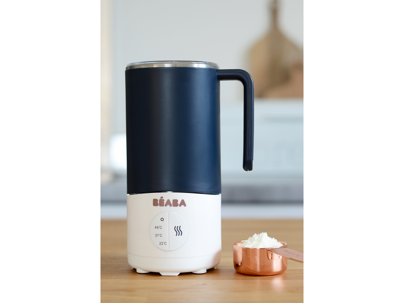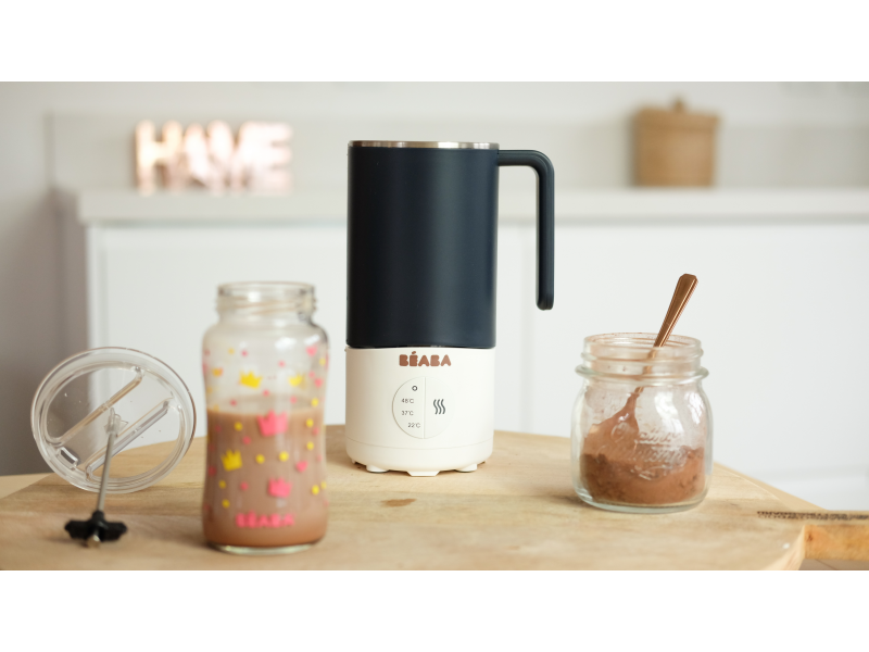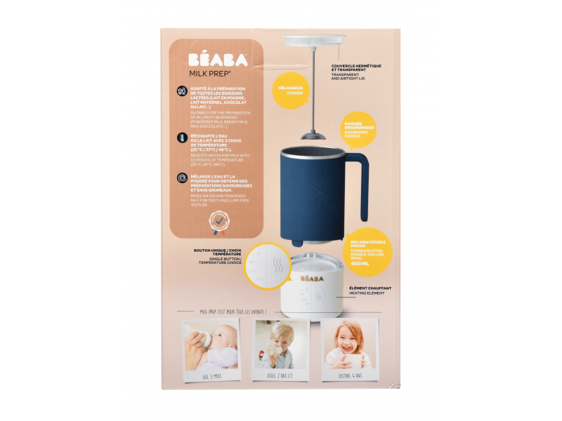 Přístroj Beaba Milk Prep je určen pro jednoduché ohřívání a dokonalé rozmíchání kojeneckého mléka, mateřského mléka i dalších mléčných nápojů pro děti (kakao apod.). Umožňuje nastavení ohřevu na tři různé teploty: 22°C / 37°C / 48°C. Během ohřívání přístroj tekutinu míchá, takže výsledný nápoj je dokonale hladký bez hrudek a stejnoměrně prohřátý. Příprava nápoje trvá dle nastavení cílové teploty 1-6 minut.