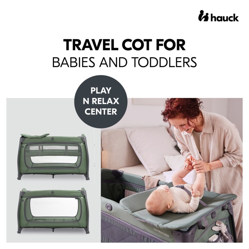 Vybavená cestovní postýlka Hauck Play N Relax Center z kolekce Select. Polohovací lůžko, boční kapsa, velmi stabilní konstrukce.