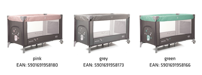 Postýlka Royal byla vybavena kolečky, díky kterým postýlku snadno přemístíte na požadované místo. Díky kompaktnímu skládacímu systému se velmi pohodlně přepravuje a nezabere mnoho místa