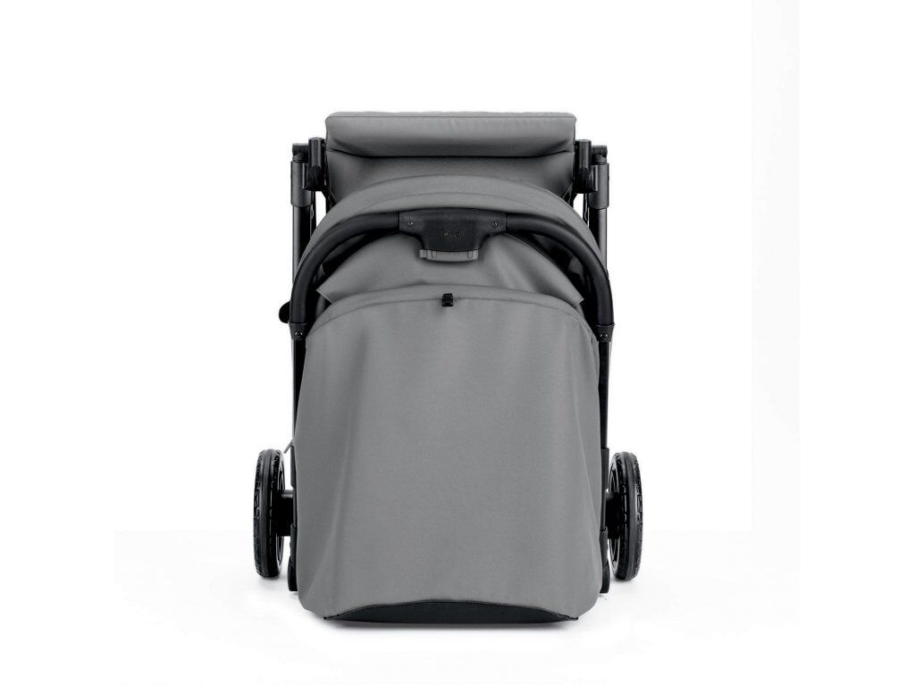 Speciální automatické skládání se aktivuje dotykem a v mžiku se kočárek sám složí. Po složení zůstane stát rukojeti vzhůru, takže ani rukojeť ani potah se nedotýkají země, proto všude zachováte maximální hygienu.