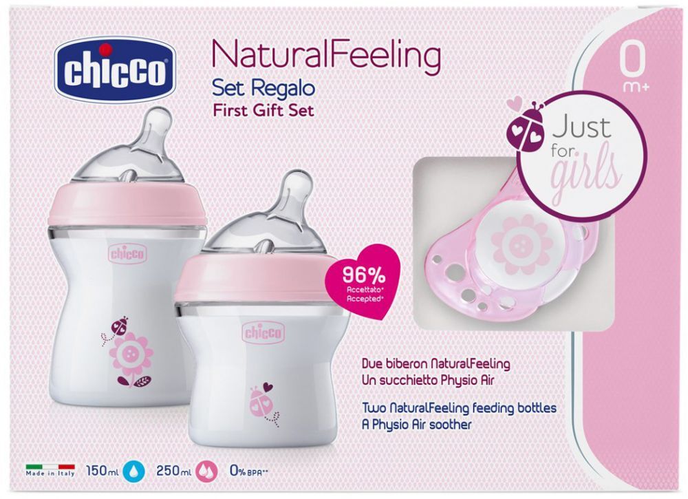 CHICCO Dárkový set Natural Feeling + Air dudlík - dívka