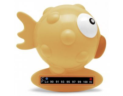 Oranžová rybička je milou hračkou do vody, ve které je umístněn teploměr ukazující teplotu vody ve vaně.