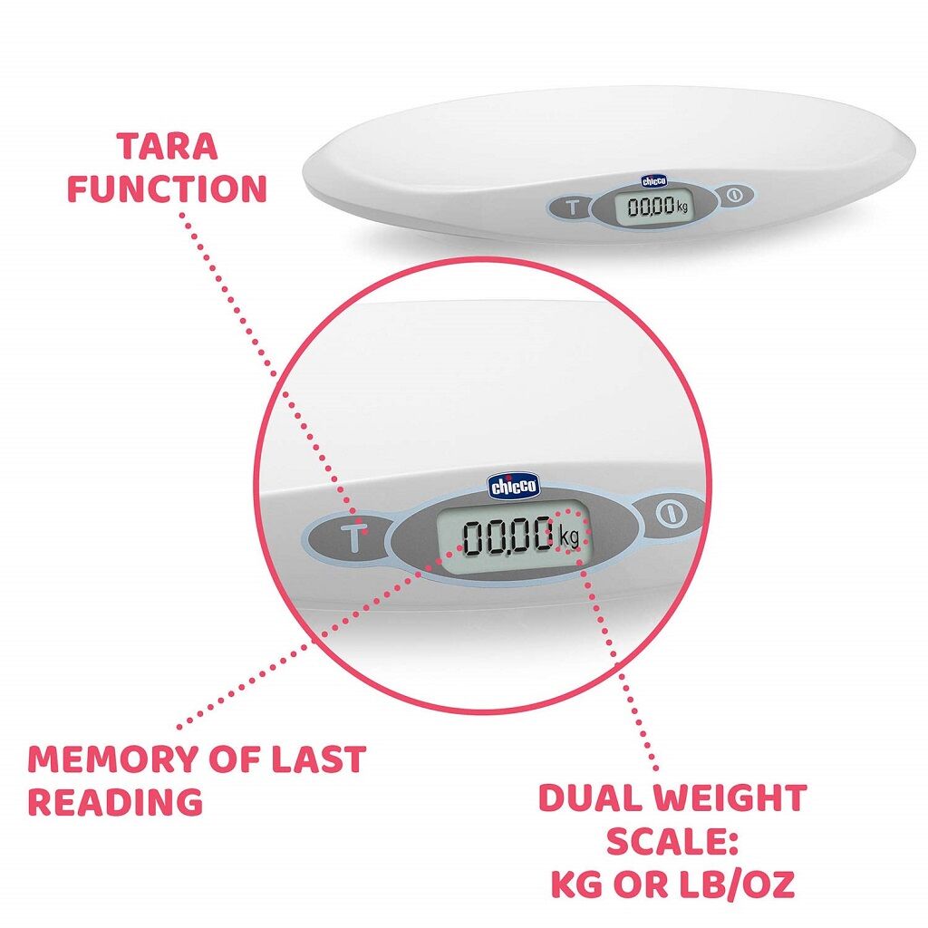 Ergonomicky navrhnutá a kompaktně tvarovaná Chicco Baby Comfort digitální elektronická váha zváží Vaše dítě už od jeho prvních dnů. Rozsah váhy je od 30g do 20kg.