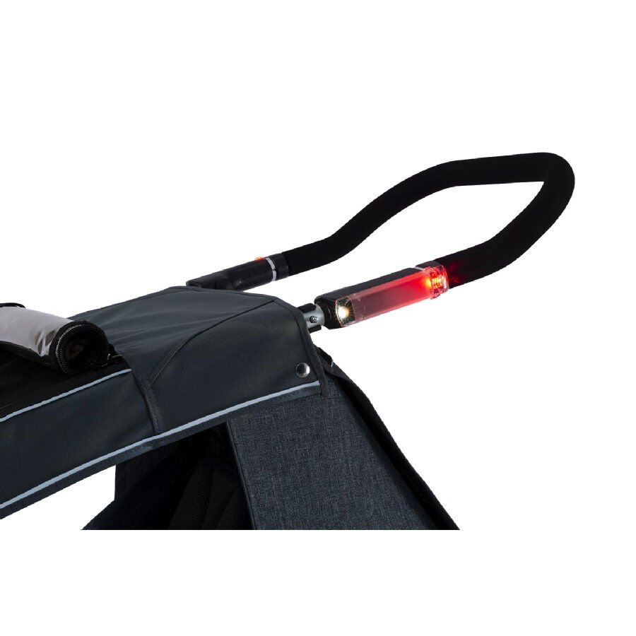 Click & Flasch®: Osvětlení vozíku integrované v rukojeti se zapíná automaticky při pohybu nebo za snížení viditelnosti. Tento systém byl vyvinut společnostmi Busch and Müller.