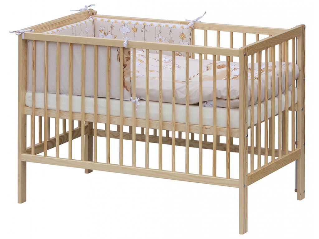 1 . Dětská dřevěná postýlka 120x60 cm - přírodní / bílá, nohy postýlky jsou předvrtané pro možné nasazení koleček