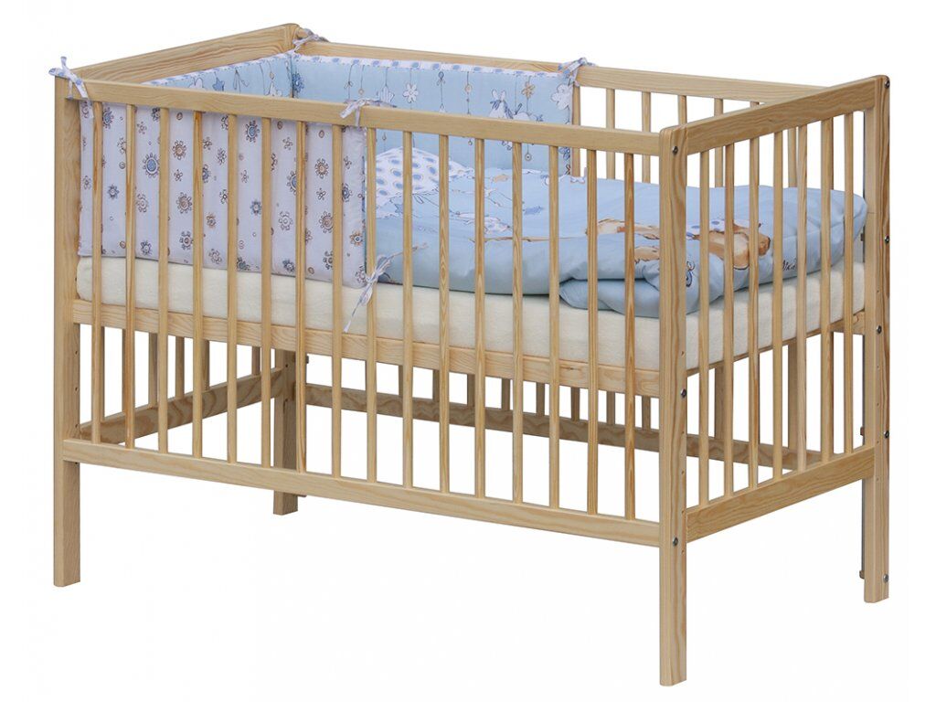 1 . Dětská dřevěná postýlka 120x60 cm - přírodní / bílá, nohy postýlky jsou předvrtané pro možné nasazení koleček