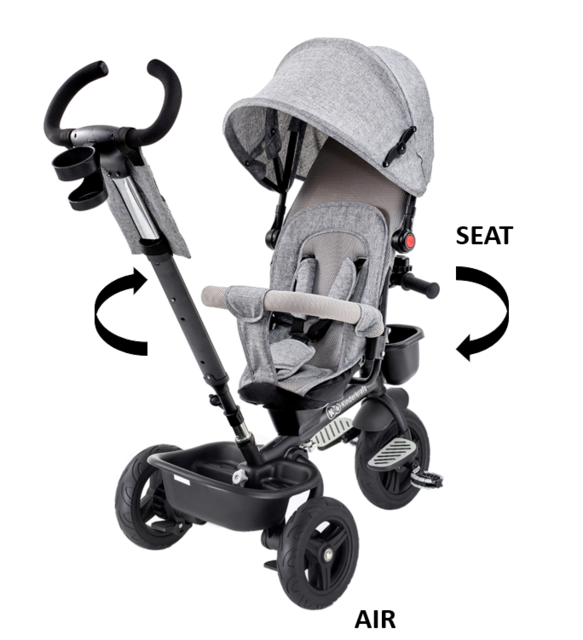 Sedadlo můžete otočit dopředu nebo dozadu. Díky tomu je dětské kolo vhodné pro děti od asi 9 měsíců věku. Bude neocenitelným společníkem na každou procházku a až vaše ratolest vyroste, můžete AVEO snadno proměnit v samostatnou tříkolku.