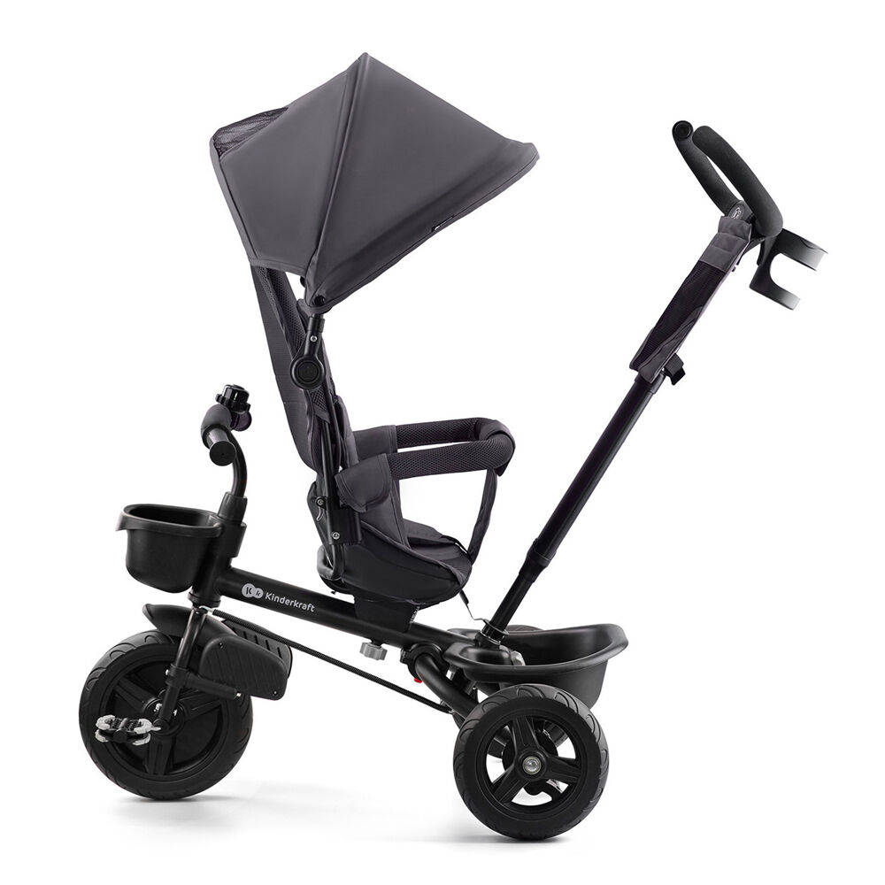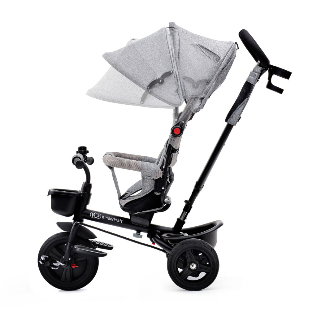 Multifunkční tříkolka KINDERKRAFT AVEO s otočným sedadlem, které umožňuje, aby dítě mohlo koukat dopředu a dozadu. Je vybaven velkou střechou s oknem pro rodiče, které chrání dítě před sluncem a deštěm. Má koš s místem pro nohy, stejně jako malý koš pro přepravu vaší oblíbené hračky.
