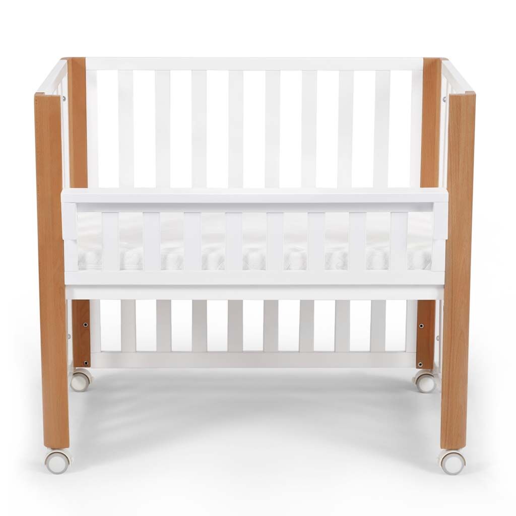 Dětská postýlka 4 v 1 KOYA plní funkci přistýlky - stačí sundat jeden bok a na jeho místo namontovat nízkou bariéru, a následně připnout přistýlku pásy. A je hotovo! Vaše dítě se bude cítit bezpečně, když vás bude mít vedle, a vy nebudete muset vstávat a procházet přes celý pokoj, abyste ho nakrmila.