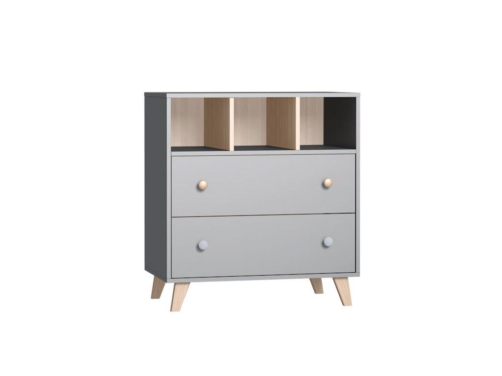 Komoda poskytne dostatek místa na vše potřebné pro Vaše miminko, v horní části otevřená polička pro velmi frekventované potřeby nebo pro věcí, po kterých potřebujete sáhnout ospalá poslepa, níže dva šuplíky chránící věci před prachem. Komoda je optimálně vysoká.