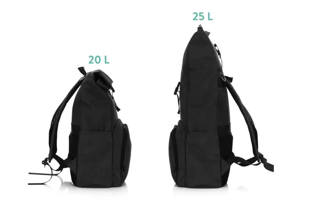 S přebalovacím batohem Tokio získáte stylový a praktický přebalovací batoh ve stylu roll-top. Uzavírání roll-top umožňuje zvětšit objem z 20 na 25 litrů. Díky praktickému uzávěru click lze batoh otevřít během několika sekund.