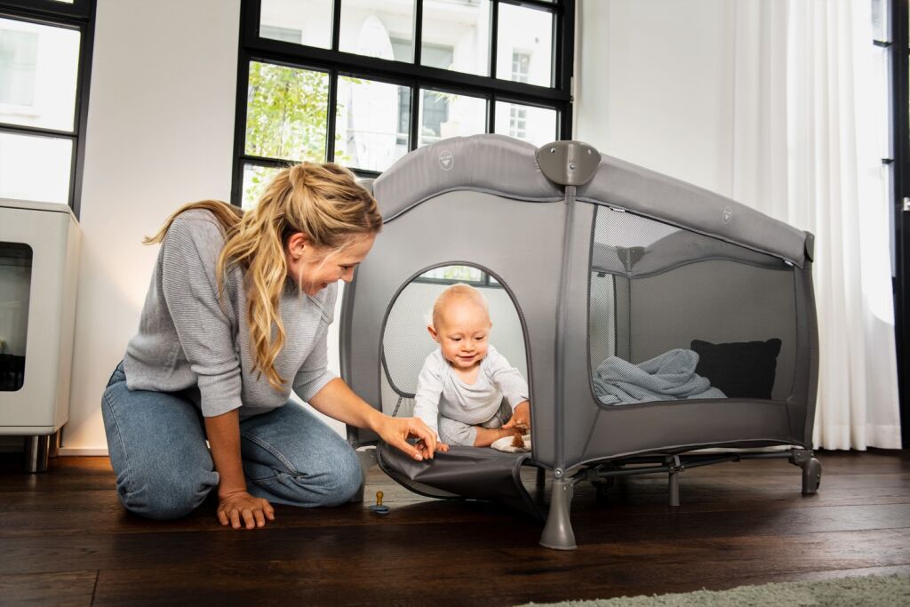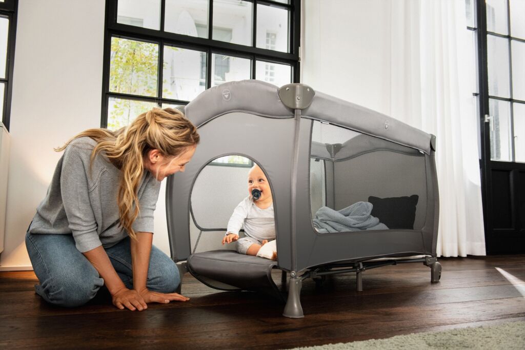 Čas na hraní // Postranní otvor zaručí velké dobrodružství, dítě tudy může prolézat a má tak o zábavu postaráno. Přes den cestovní postýlka poslouží jako hrací centrum a v noci se díky kolečkům promění v praktickou přístavnou postýlku do ložnice. Miminko tak budete mít vždy zcela nablízku a můžete klidně spát.