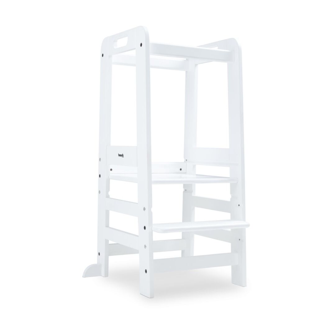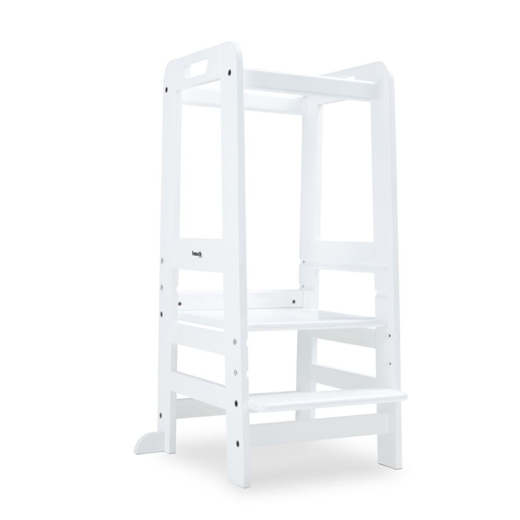 Díky vyvýšené poloze stupínku se může vaše dítě zapojit do běžných rodinných aktivit a pomáhat vám, bezpečně ve výšce očí. V duchu Montessori "Pomoz mi, abych to dokázal sám" se vaše dítě od útlého věku zapojuje formou hry, např. do vaření nebo pečení, a posiluje tak svou samostatnost, jazykový a sociální rozvoj i sebevědomí. Učící Věž pro batolata hauck má certifikát FSC®, což znamená, že bukové dřevo pochází z lesů s certifikátem FSC a šetrným lesním hospodářstvím.