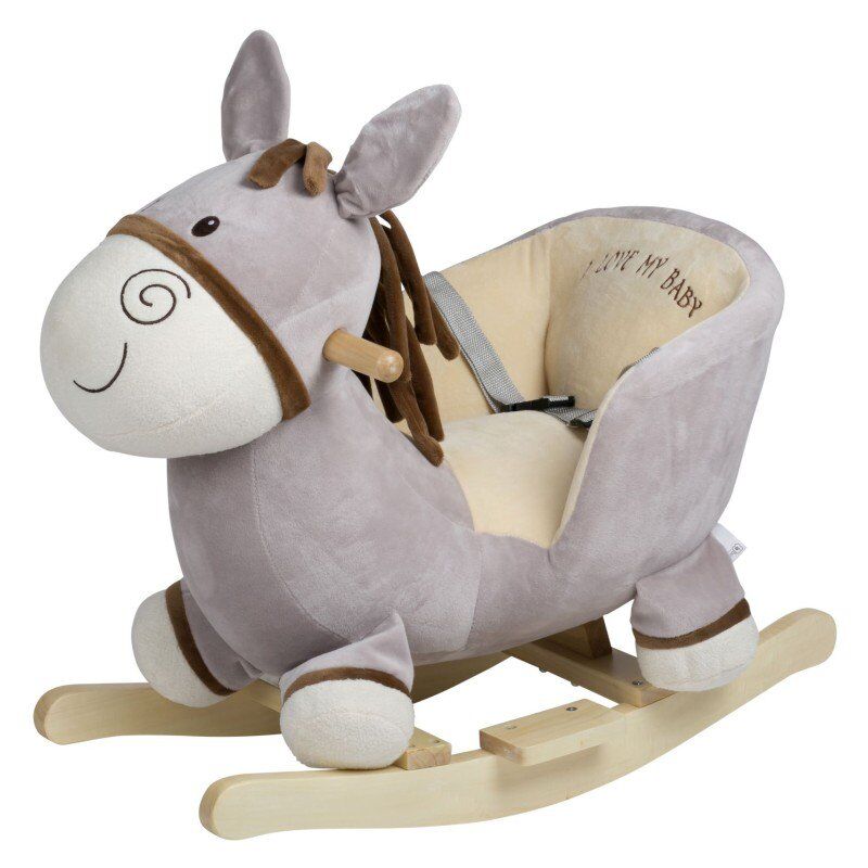 Houpačka je z jemného, měkoučkého materiálu, ve tvaru plyšového zvířatka. Má měkké polstrované sedadlo, dítě je v pohodlí a bezpečí. Navíc po stisknutí nožičky bude hrát.
