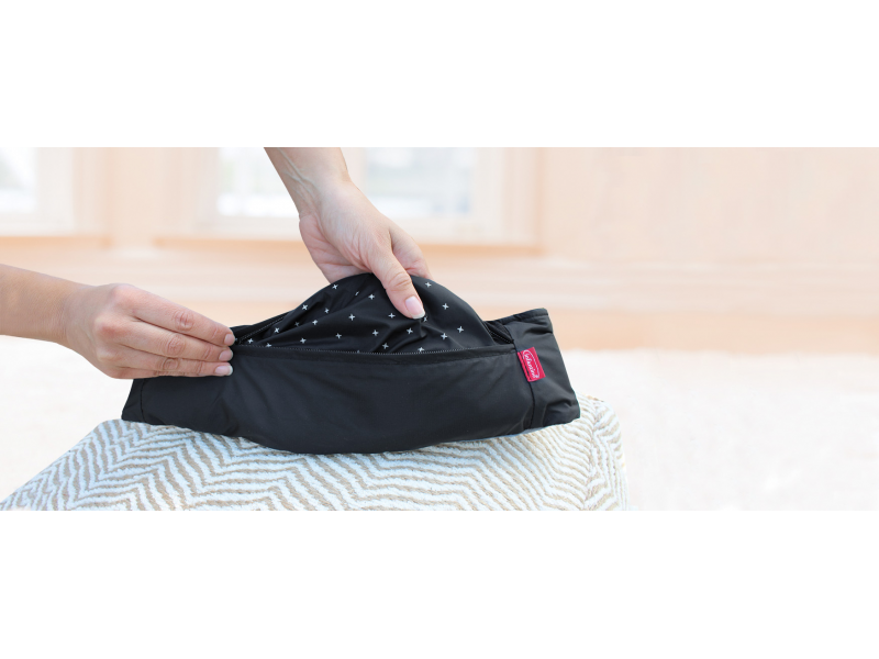 Lehké nosítko Zip Travel je díky své skladnosti ideální na cestování či např. nákupy s dítětem. Když nosítko nepoužíváte, jednoduše jej složíte do kapsy, která je součástí bederního pásu a můžete jej buď nosit jako ledvinku, nebo jej uložit do přebalovací tašky či do kočárku.