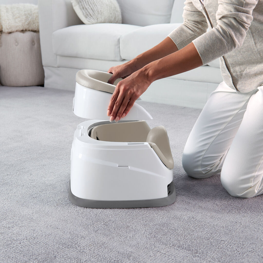 Pohodlný, snadno čistící podsedák pomáhá dítěti stravovat se u stolu v ideální výšce. Vychutnejte si tak více smíchu a konverzace, včetně dětských rozhovorů při společném obědě nebo večeři. Podsedák se snadno připojuje na jídelní židle. Funkce 2v1 Vám umožňuje použít ho jako sezení u stolu, ale i jako sedadlo na podlaze během volného času. Díky odnímatelnému pultíku má děťátko vlastní stůl v dokonalé velikosti, čili občerstvení a také hračky jsou na dosah. Pokud se nepoužívá, pohodlně se vyklopí pod samotné sedadlo. Když dítě vyroste z vysoké židličky tento podsedák je přesně to, co potřebujete.