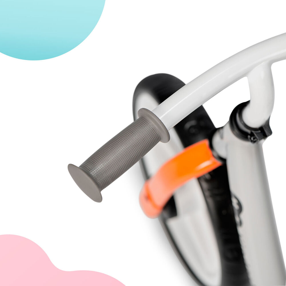 - Řídítka – pevné rukojeti, které jsou vyrobeny z protiskluzového materiálu. Řídítka mají speciální zabezpečení, které omezuje úhel otočení, čím předchází pádu dítěte. Jsou také regulovatelné v rozsahu 52-59 cm, díky čemu je možné odrážedlo přizpůsobit výšce dítěte.