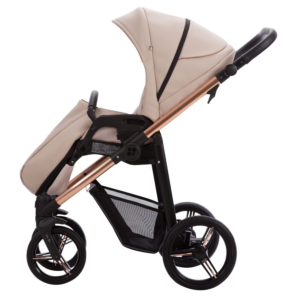 Lehký sportovní kočárek Bebetto Nico Shine s otočnou sedačkou z eko kůže v obou směrech jízdy. Polohovací záda i nohy. V ceně kočárku je zateplený nánožník a pláštěnka.