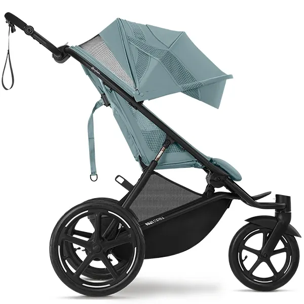 Uživatelsky přívětivá integrovaná ruční brzda pomáhá kontrolovat rychlost v kopcovitém terénu. Ruční nastavení rukojeti je snadné, takže najdete ideální polohu pro tlačení kočárku.
