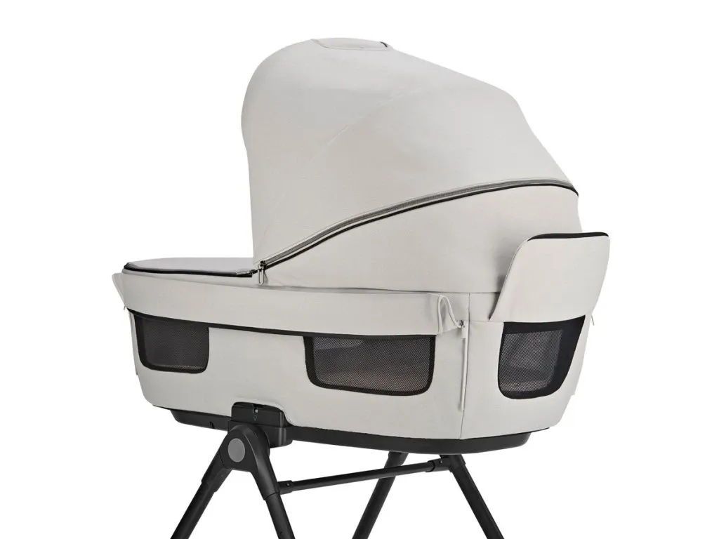 Vanička kočárku ve velikosti XXL 79x37cm je prostorná a velmi lehká, přičemž je navržena v souladu s nejnovějšími bezpečnostními normami a díky speciálně tvarované velmi pevné skořepině s absorbéry nárazu zajišťuje vysokou úroveň ochrany děťátka. Po instalaci Auto Kit (volitelné příslušenství) je schválena pro použití v autě. Nová je také dečka, která je dvoupolohová a velmi usnadňuje manipulaci s dítětem při jeho vkládání či vyjimání z a do kočárku. Dno vaničky je chráněno sítí propojenou s vnitřním potahem. Nad ním je dvojitá matrace obsahující Welcome PadTM, kterou lze, až dítě povyroste (3-4 měsíc) odejmout. Vanička je plně ventilována sítí v boudičce, otvorem v čele vaničky i otvory ve dně, které lze uzavřít.
