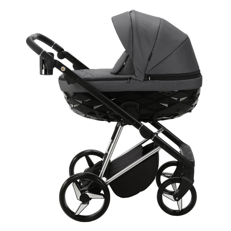 Nadčasová, klasická elegance kočárku ADAMEX Quantum Special Edition - to je dokonalá kombinace černé a trojrozměrné korby s vybranými látkami.