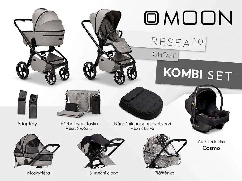 Kočárek MOON RESEA 2.0 Kombi set 3v1 - Ghost 2026
