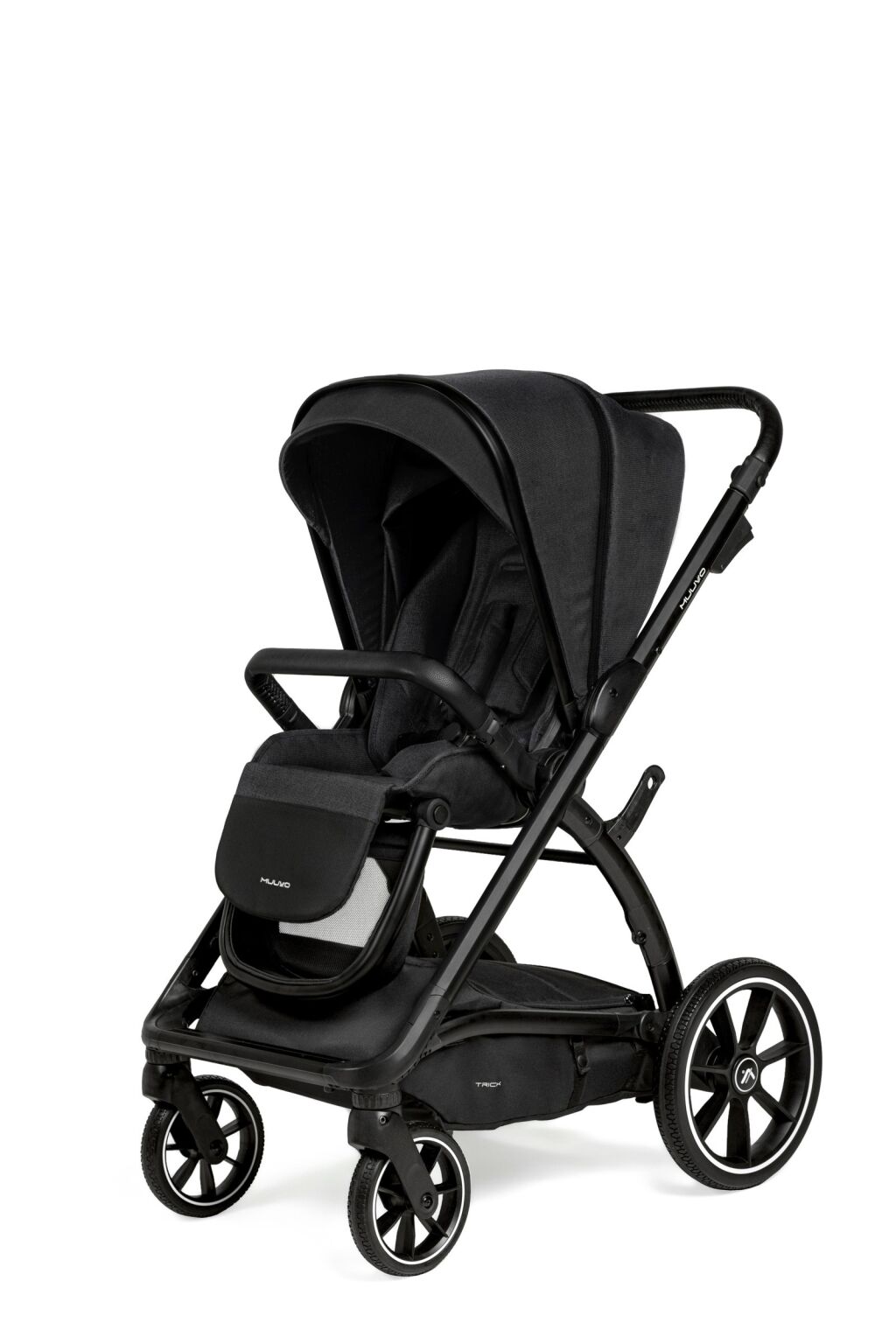 Muuvo Trick je lehký a extrémně obratný kočárek 2 v 1. Prostorná korbička ke kočárku Trick má celou řadu funkcí, které poskytují plnou ochranu před měnícími se povětrnostními podmínkami, mimo jiné 3D Airflow ventilaci, všitou moskytiéru a prodlužitelnou stříšku. V nejteplejších dnech je také možné zcela odejmout ventilační panely a poskytnout tak miminku svěží vánek. Nánožník poskytuje další ochranu miminka před nepříjemným počasím v chladném období.