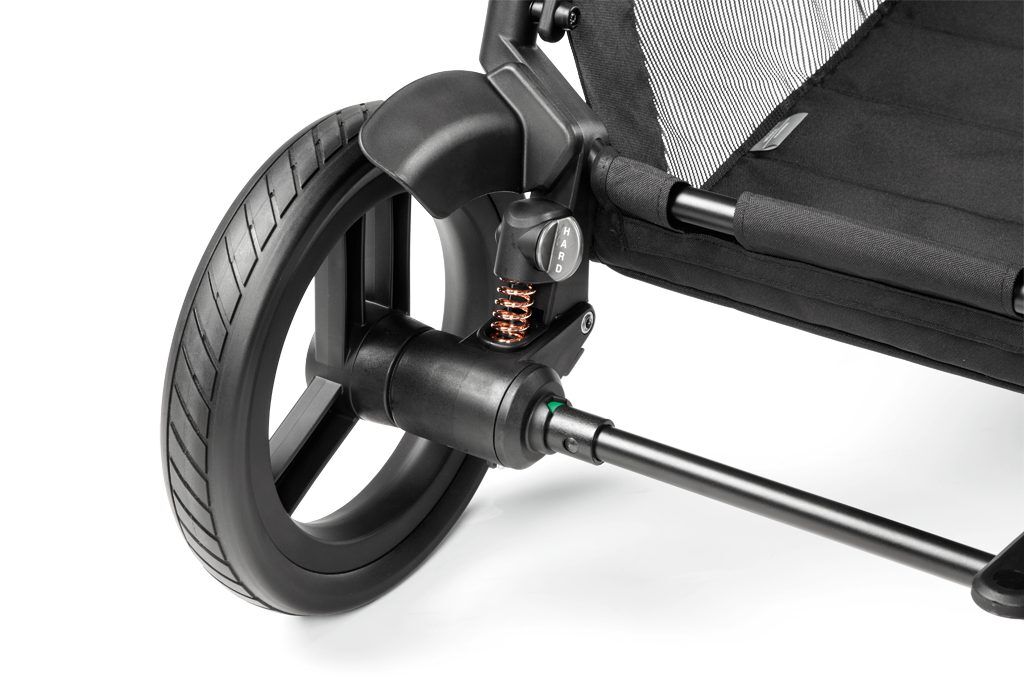 Nastavením odpružení kočárku Peg Perego Veloce TC do polohy SOFT bude jízda na nerovném povrchu měkká a hladká. Pozice HARD usnadní pohyb kočárku po městských ulicích a chodnících.