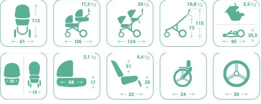 Lehce ovladatelný a široké možnosti regulace zádových a nožních opěrek dovolují najít tu nejvýhodnější polohu pro pohodlné cestování dětí. Skladný a malé rozměry po složení kočárku jsou jen základní charaktristiky tohoto modelu. Vylepšený, odlehčený podvozek s patentovaným systémem skládání, nové hluboké korbičky.