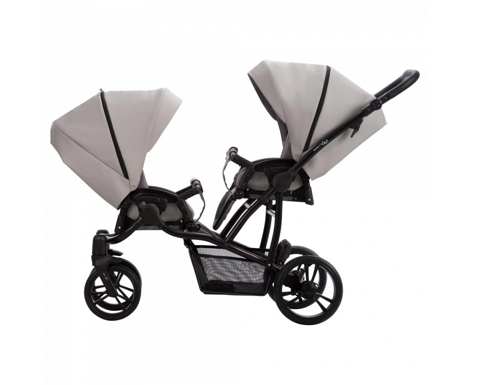Moderní kočárek Bebetto 42 New vhodný pro sourozence i dvojčátka. Vzájemná kombinace hluboké korby, sportovní sedačky i autosedačky. Vylepšený, odlehčený podvozek s patentovaným systémem skládání, nové hluboké korbičky.
