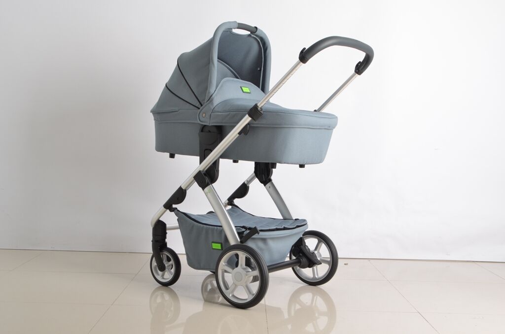 Součástí kočárku je prostorná hluboká korba s kvalitní zdravotní matrací od značky Traumeland, polohovací sportovní sedačka, podvozek s košíkem a dvě kompletní sady kol.