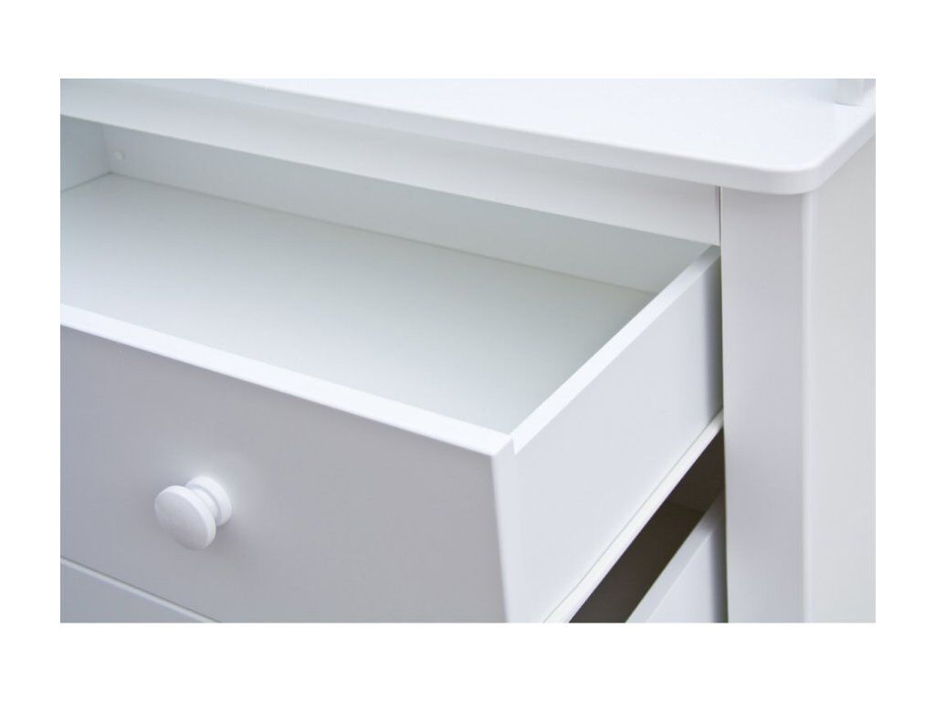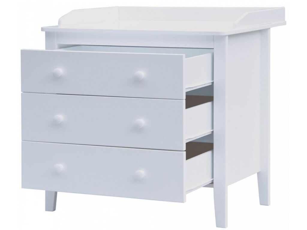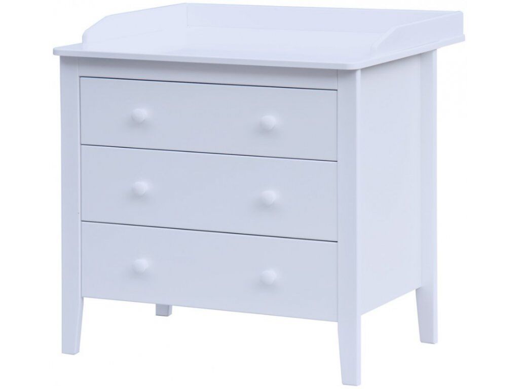 Bílá komoda je vyrobena z bukového dřeva, laminátu a MDF. Přeblovací pult je možné oddělit. Komoda obsahuje 3 prostorné šuplíky. Komoda je velmi robustní, proto není třeba dalšího jištění proti převrácení.