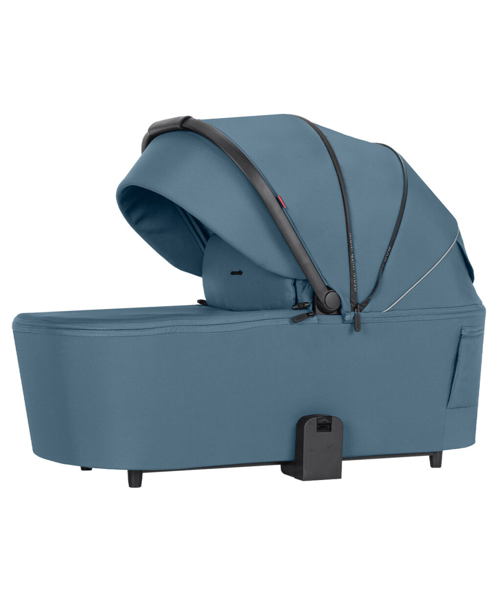 Má také praktické ucho na přenášení, potažené ekokůží a uvnitř najdete měkkou podšívku a matraci. V zadní části gondoly a na samotné kapuci jsou okénka pro větrání v horkých dnech, zapínaná na zipy.