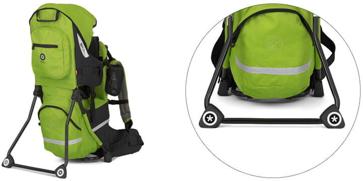 Krosna je velmi dobře vybavena pro všechny typy výletů. Integrovaná stříška chrání proti slunci a dešti a v případě potřeby se dá rozšířit. Všechny důležité věci jsou šikovně uloženy v různých kapsách nebo přihrádkách. Pití můžete dát do držáku na boku krosny, kde ho budete mít vždy při ruce. Stojan může být rozložen a složen i když máte krosu na zádech, a tak ji můžete kdykoliv bezpečně položit i s dítětem uvnitř.