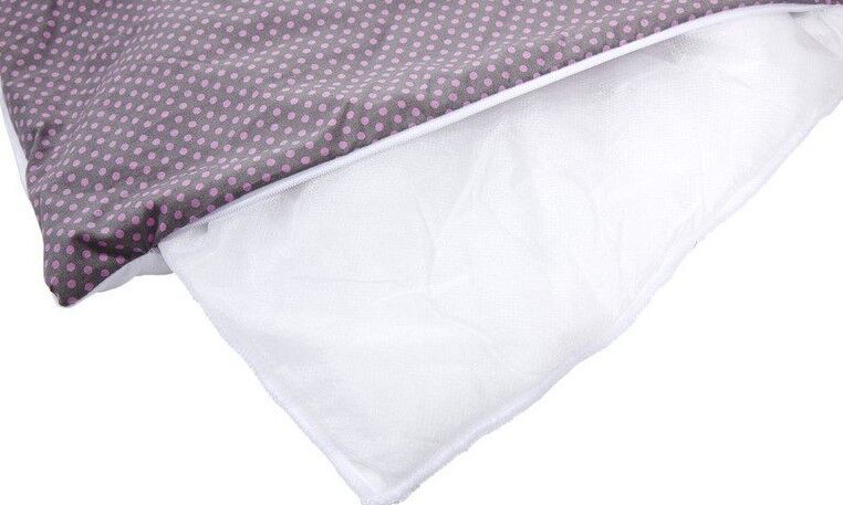 Vrchní strana zavinovačky je vyrobena z bavlněné látky s potiskem, je vyplněna měkkým polyesterovým rounem a v zadní části je zpevněna molitanovou vložkou. Vnitřní stranu tvoří hebký bavlněný satén.