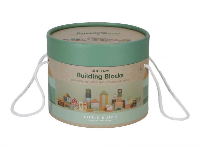 Barevné kostky v kyblíku s ouškem. Na kostkách jsou roztomilé obrázky, které se děti určitě rychle oblíbí. Postavte co nejvyšší komín, hrad, věž, ohrádku pro zvířátka nebo další zajímavé stavby.