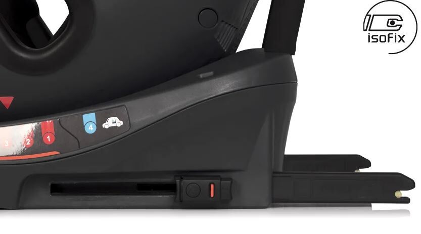 - tomto případě by měla být opěrná noha i 3-bodové bezpečnostní pásy skryty ve vyhrazených přihrádkách. Dítě je zajištěno bezpečnostními pásy auta spolu s celou sedačkou. Je nesmírně důležité správně nastavit výšku opěrky hlavy