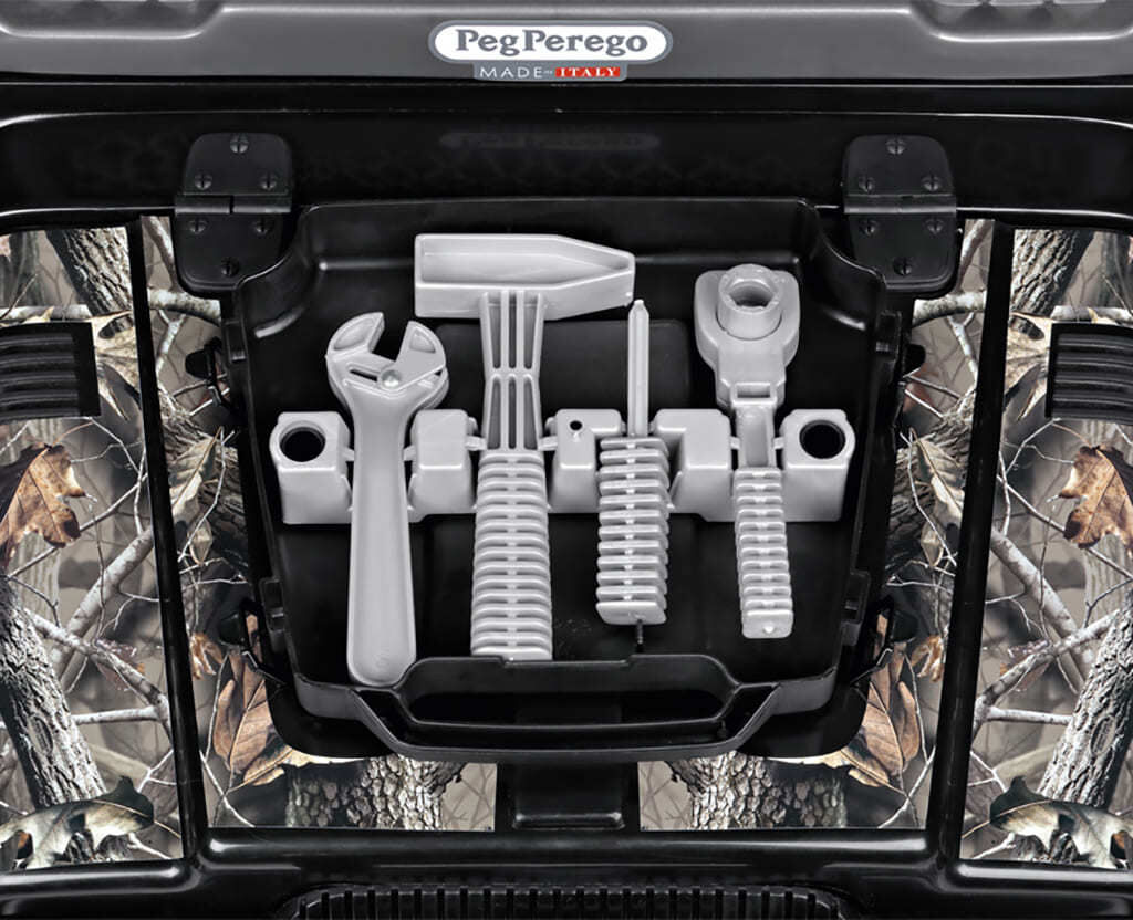 - Tento drsný dvoumístný terénní vůz s nezaměnitelným vzorem Realtree™, je dětmi milován a záviděn dospělými, ohromuje tichou jízdou ve všech terénech. Dvě pohodlná sedadla jsou nezávislá, nastavitelná, s potahy z ekokůže. Maximální přepravní hmotnost 100 kg.