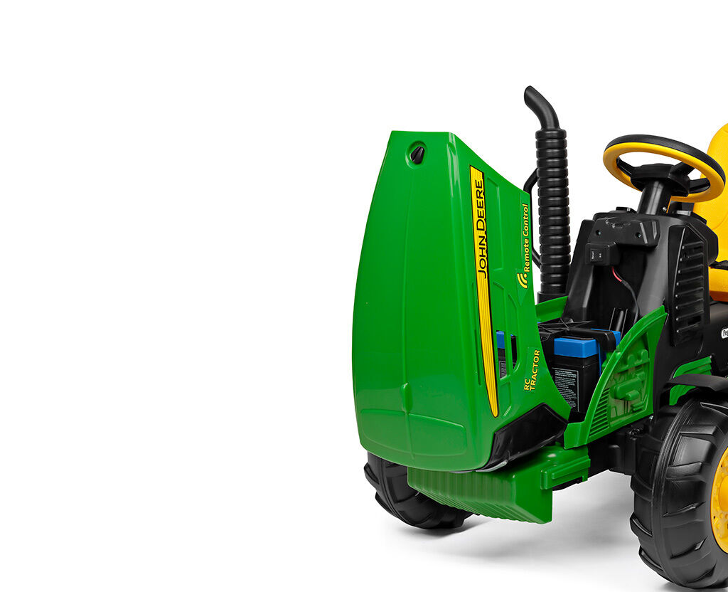 John Deere RC Tractor je jednomístný traktor vybaven novou lithiovou baterií 12,8V 8,6A a nabíječkou 12V k nabíjení lithiové baterie, která napájí dva motory 165 W (celkový výkon 330W). Výhodou lithiových baterií je prodloužený dojezd vozidla, rychlejší a kratší doba nabíjení, výrazně delší výdrž, delší životnost baterie a nižší hmotnost.