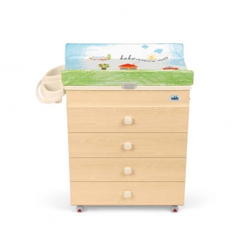 Velký dřevěný přebalovací stůl Cam Asia se 4 zásuvkami a vestavěnou vaničkou pro děti od narození do 12 měsíců