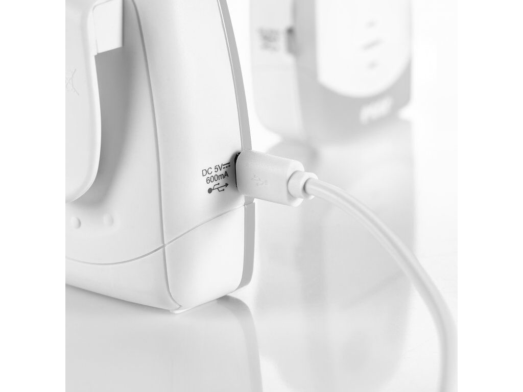 Rodičovskou jednotku lze ovládat jak pomocí adaptéru USB, tak pomocí baterií. Díky samostatnému kabelu USB je však možné chůvičky flexibilně ovládat také pomocí zásuvky se standardními USB adaptéry. Napájení dětské jednotky ze sítě vás chrání před nepozorovaným vypnutím zařízení, například kvůli slabým bateriím.