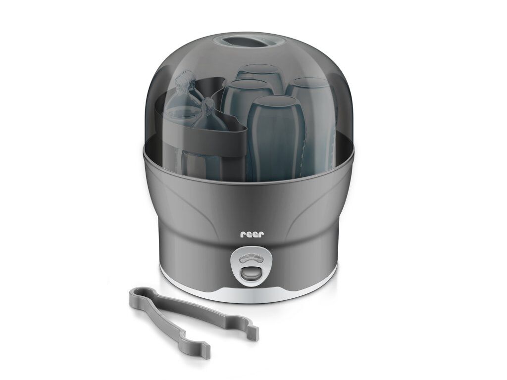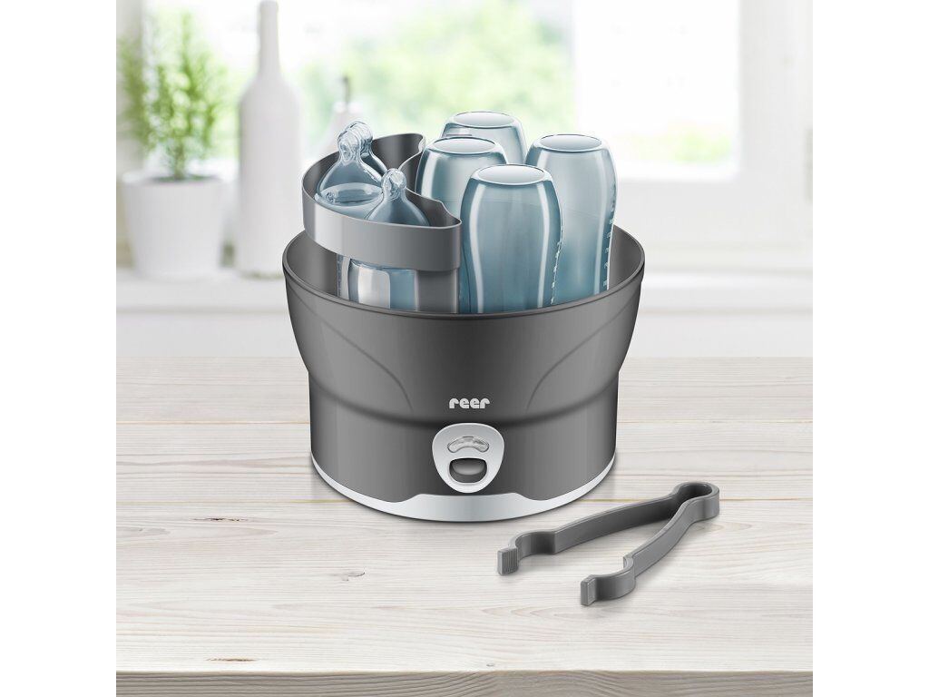 REER parní sterilizátor VapoMat S. Praktický sterilizátor pro rychlou, snadnou a bezpečnou dezinfekci dětských láhví, dudlíků a příslušenství. Dezinfekce pomocí páry je šetrná k životnímu prostředí a trvá pouze 10 minut.