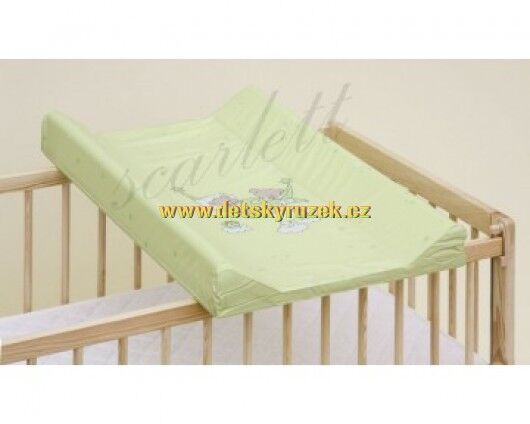 Přebalovací podložka s pevnou vložkou z MDF a profilovanými okraji z kvalitním PVC potahem bez ftalátů, vyplněná molitanem. Podložka má zarážky které brání pohybu při položení na postýlku